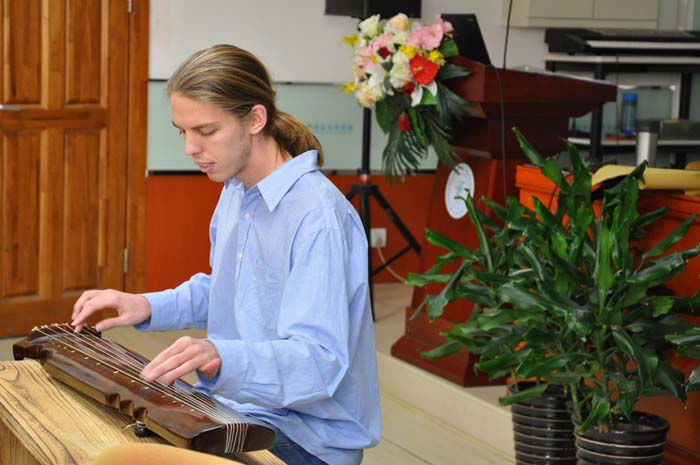 茶歇期间,外教Dallas的古筝演奏引来全场热烈的掌声。