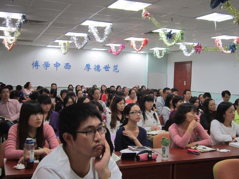 苗老师用生动的语言,朴实的例子为大家做了深刻的讲解,同学们都认真听苗老师讲述大家即将面对的研究生生活,学习和学术研究,并对之无限期待!