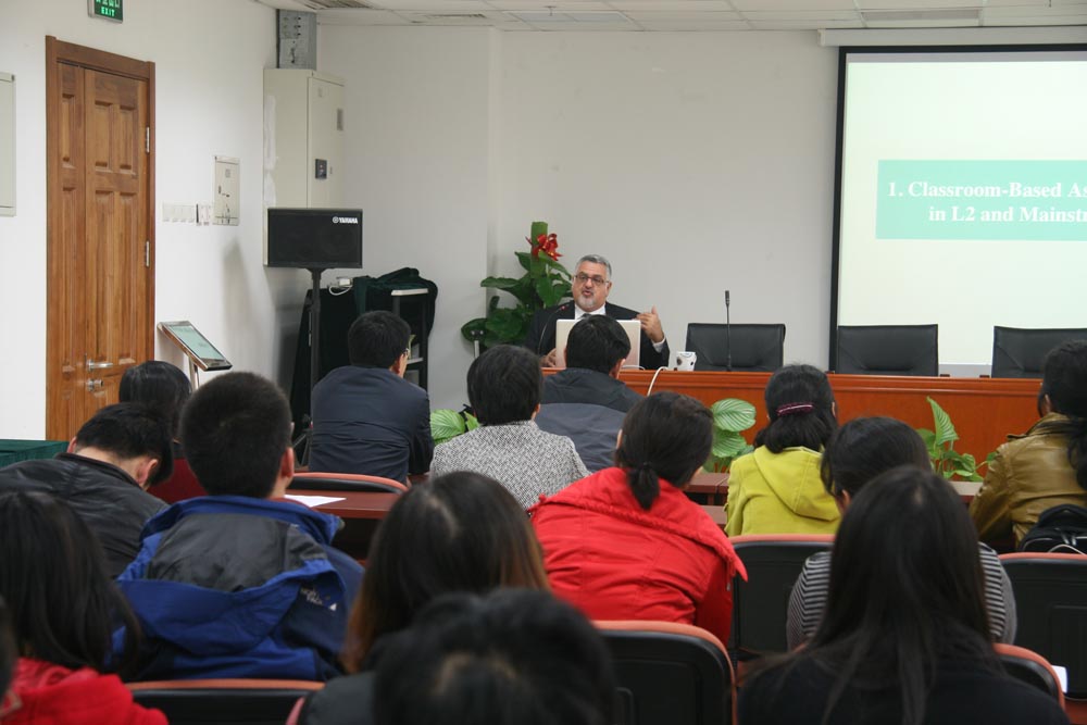 11月1日下午在后主楼914会议室,由做爱视频 举办的系列讲座邀请到了美国哥伦比亚大学Purpura教授,为做爱视频 的师生作了题为“A Learning Orientation to Classroom-Based Language Assessment”的讲座。此次活动由罗少茜老师主持,做爱视频 院长程晓堂等多位老师列席了讲座。做爱视频 的研究生、博士生同学以及访学老师们都参加了本次活动。