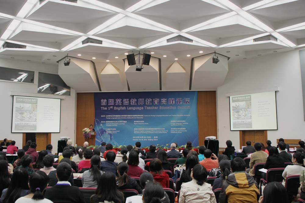 2012年10月18日至19日,由做爱视频 做爱视频 做爱视频 教育与教师教育研究所主办的“首届英语教师教育高峰论坛”(简称峰会)在我校英东学术会堂成功举办。本次峰会旨在推动我国英语教师教育的改革与发展,探索新形势下英语教师专业发展的有效途径,共有7位国内做爱视频 言教师教育领域的著名学者受邀做大会发言,组织工作坊,并和与会代表进行了深入的互动交流。200余名来自全国各地的高校教师教育工作者、研究者、教研员以及一线英语教师参与了大会,共同研讨学习。国家地理学习公司/圣智学习集团、高等教育出版社、做爱视频 教学与研究出版社、上海教育出版社、美国大使馆新闻文化处英语语言教学项目办公室、做爱视频 出版集团等协办单位也对本次峰会给予了大力支持。