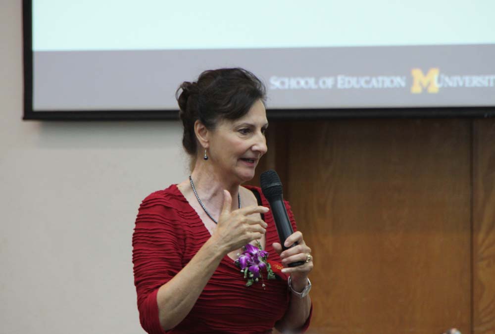 18日下午2点,来自美国乔治梅森大学的Anastasia P. Samaras教授围绕着“教师自我研究”组织了工作坊,拉开了大会第二单元的序幕。她清晰介绍了自我研究的五大要素(five foci),并引导与会者通过完成研究草图(design sketch)认识到教师研究与实践中“自我(the self)”的核心意义。在19日上午的大会发言中,Samaras教授进一步强调了教师在研究中建立批判性合作团队的重要性,并辅以丰富的案例及数据,揭示了建立具有奥运精神的教师自我研究团队(Olympian self-study teacher teams)的价值与现实可能。