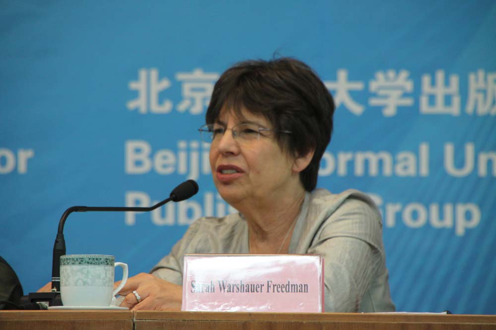 关于“教师研究推动教师发展”的议题在Sarah Warshauer Freedman教授的大会发言中得以延续。Freedman教授是另一位来自美国加州大学伯克利分校的学者,她以一位语言教师Paul在职前、职中、跨职业等不同阶段的研究经历为个案,详细汇报了他通过开展教师研究提升对专业知识的理解、组建合作团队、解决教学困难的过程,勾勒出教师研究对其专业发展带来的深远影响。本场发言多次融入Paul的视频与录音,使被研究者有机会与现场连线、亲身讲述其职业成长历程。