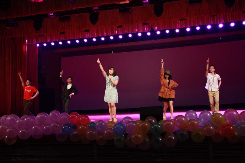 整场晚会同学们用歌声、舞蹈和欢笑追忆了难忘的四年大学生活,用各种方式尽情表达自己对友情、爱情、师生情的留恋。林洪老师为晚会献上了《阳光路上》等歌曲,并和英文系的谭波同学合唱了一首日文歌,博得了现场阵阵掌声。武玉红老师和张新颖老师参与了游戏环节的“猜词游戏”,给大家带来了阵阵笑声。晚会在合唱《朋友》中圆满落下帷幕。
