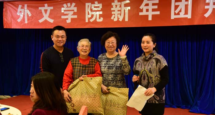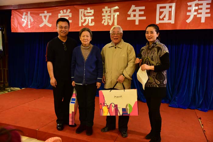 团拜会上,向年满80岁的老师赠送了生日礼物,向属羊的老师赠送了纪念品。这几位老师在接受了礼品之后,用简短的话语感谢大家的关心,并祝大家新年快乐!