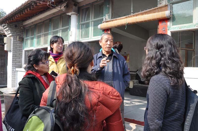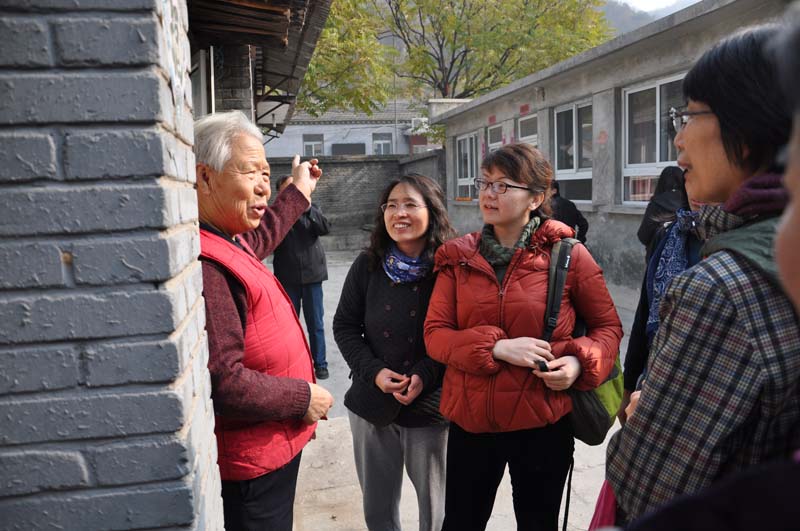 一行人告别了李镇长,在张科长带领下,来到了西马各庄村和东马各庄村,走街串巷,走访农家。正如李镇长所说的那样,街道里十分干净,见不到任何乱扔的塑料袋或纸屑,家家户户门口整洁,院内摆放整齐,垃圾桶内的垃圾都在一早被收走了。老师们与村民攀谈起来,热情的大爷、大妈毫无保留地介绍着他们的家庭以及垃圾的分类。走在路上,张科长指着一条水道告诉我们,2012年“7.21”爆发山洪的时候,水道里布满了水,但是水里没有任何的白色垃圾漂浮,王平镇的垃圾分类经受了考验。