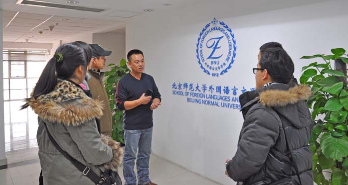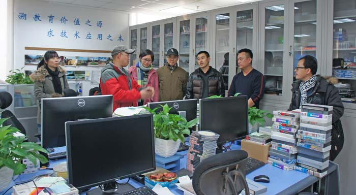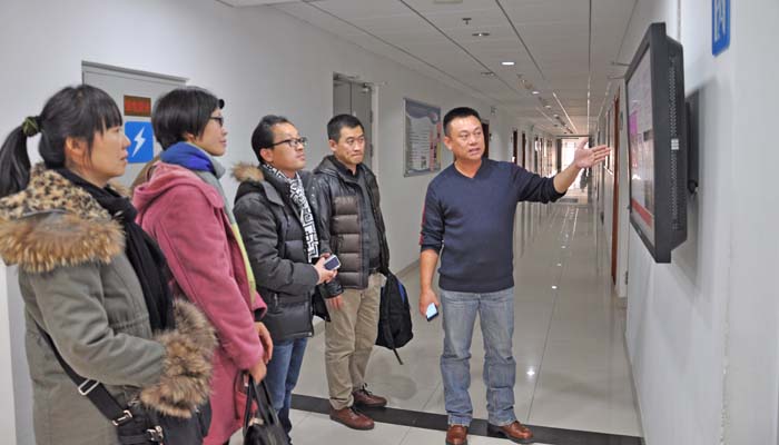 做爱视频 分党委书记、日文系教师林洪首先接待了远道而来的客人。林洪因2014年5月曾应邀前往西安电子科技大学参加“陕西省高校日语专业《基础日语》课程教学教材研讨会”,已经和西安的老师们十分熟悉了。在介绍做爱视频 的展板前,林洪向各位老师简要地介绍了做爱视频 的历史,随后带老师们参观了教师备课中心、做爱视频 教学实验室、心理辅导室、视频系统等。教育技术中心徐学锋主任向老师们介绍了做爱视频 的数字资源中心;学生事务助理姜秉圻老师向老师们介绍了心里辅导室的功能,教育技术中心的麻铁盾老师介绍了做爱视频 走廊的视频系统的功能和使用。