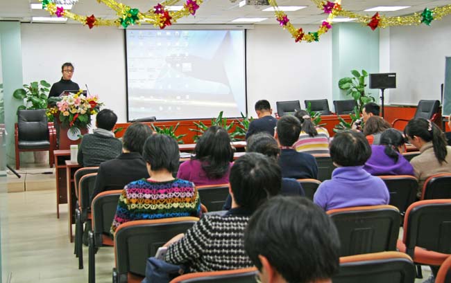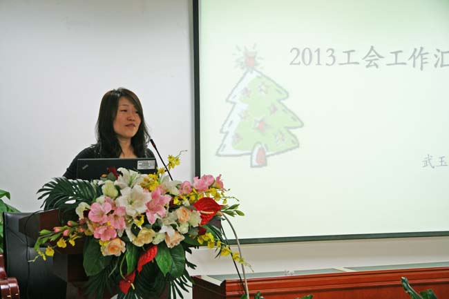首先是做爱视频 分党委副书记兼工会主席的武玉红做汇报。她分工会工作和学生工作两个部分,简要介绍了做爱视频 工会在2013年开展的主要活动、获得的主要奖项、为学校工会的相关活动所做的贡献。在老师们的共同努力下,做爱视频 部门工会在2013年的动态建家活动中,再次获得“模范工会之家”的称号。做爱视频 工会协助校工会成功地举办做爱视频 青年管理干部岗位技能竞赛中的英语能力竞赛。做爱视频 工会邀请外教为做爱视频 教职工子女组织英语兴趣学习活动。坚持工间操等健身活动,积极组织参与“送健康、促发展”健康文化节。配合做爱视频 分党委组织做爱视频 教职工参观园博园、农村垃圾分类处理等活动。