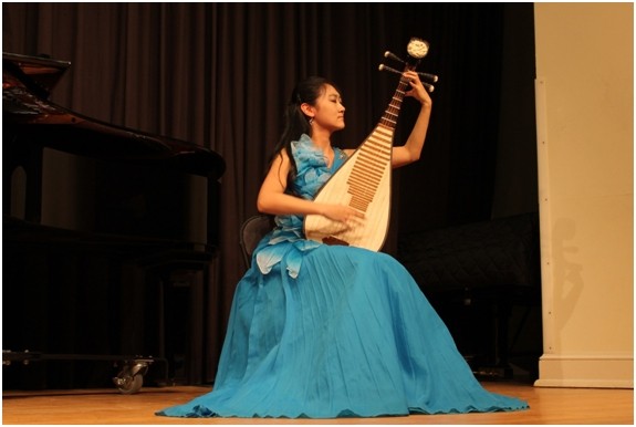 图2威廉玛丽大学学生袁安娜演出古筝独奏《雪山春晓》