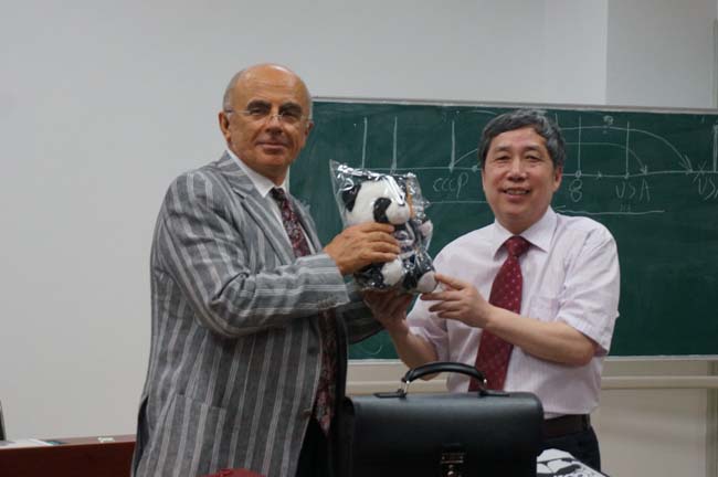 扎别索斯基此次中国之行是受教育部区域和国别研究培育基地俄罗斯研究中心的邀请,为我校师生做题为“当代俄罗斯改革的哲学反思”的讲座。张百春教授全程组织这场讲座,并进行了现场翻译。我中心成员前来参加讲座的有李兴教授、张建华教授、肖甦教授、吴萍等。来参加本次讲座的除我校相关系所的师生外,还吸引了北京大学、北京外国语大学、中国人民大学和首都师范大学的师生前来参加,使全体师生受益匪浅。