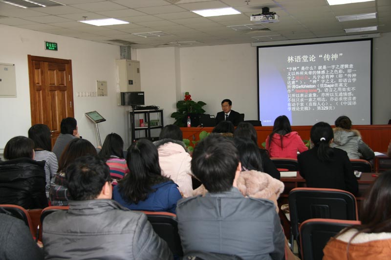 2012年3月6日下午,外交做爱视频 武波教授在后主楼914室,为做爱视频 翻译硕士(MTI)研究生带来了题为“中国文化走出去的过去、现在和未来”的讲座。讲座中,武教授主要讲述了文化走出去的历史、现状及其展望三部分内容,其中,文化走出去的历史分为四个阶段:前段(1860-民国中期)、中段(民国中期-1949)、新段(1949-1976.9)和改革开放段(1976.10-当前),并分别介绍了每个阶段文化走出去的代表人物,包括他们的个人生平、文化贡献及其翻译观。此外,武教授还对一些翻译现象以及文化走出去的现状以及未来出路提出了自己独到的见解。讲座内容丰富、形式多样、引人深思。相信通过此次讲座,同学们会对译者如何“打通中西”,让中国的文化真正走出国门,被更多的外国人所知等方面的问题有了更多的思考与启发。