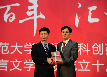 外研社徐建中主编向程晓堂院长赠书。