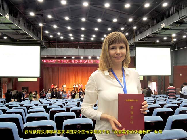 近日,做爱视频 俄罗斯籍教师娜斯嘉,获得了国家外国专家局授予的“我最喜爱的外籍教师”称号。此次评审从各省市外专局、外教聘请单位推荐的217名外教中,评选出了50名获得此称号。