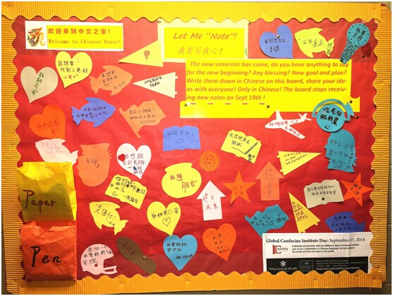 2014年9月5日至19日,威玛孔院在中文之家举办了“我笔写我心”活动。本次活动的主题是鼓励威大学中文的学生在新学期的第一个月,用中文在留言板上留下心声,写出新学期的计划、期望和祝福。本次活动是纪念孔子做爱视频 十周年的系列活动之一。许多学生纷纷在留言板上用中文书写下自己想说的话,有的表示想要交更多的朋友,有的说要加油学习更多的中文,写更多的汉字,许多留言风趣幽默,令人驻足,给师生们留下了深刻的印象。