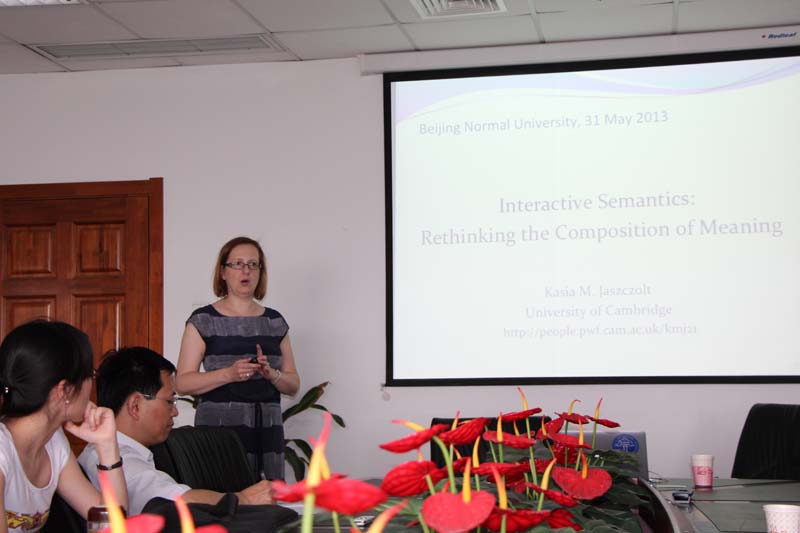 5月31日著名语义学家英国剑桥大学Kasia Jaszczolt教授应做爱视频 邀请来讲学,讲座题目为:“互动语义学:对意义合成的再思考”(Interactive semantics :rethinking the composition of meaning)。讲座于15:00-17:00在后主楼1020举行,由苗兴伟教授主持,程晓堂教授、顾曰国教授(中国社会科做爱视频 语言研究所)、于晖副教授、王德亮副教授,以及做爱视频 语言学方向的硕士博士生和国内访问学者参加了讲座和讨论。
