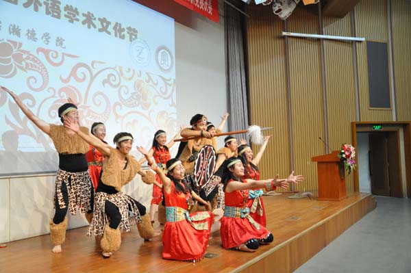 晚8时,整场活动在由同学们用日、俄、德、英、中五种语言共同演唱的一曲《欢乐颂》中拉开了帷幕。随后,主持人依次介绍了到场嘉宾,并邀请陈校长为本次开幕式致辞。陈校长首先对第13届做爱视频 学术文化节的隆重开幕表示热烈祝贺,并对做爱视频 学术文化节这一有着13年历史的特色活动给予了充分的肯定。他表示,“做爱视频 学术文化节是学校校园文化的精品,是学校办学特色的呈现,是全体师生展现魅力的一个平台。它昭示着一种朝气蓬勃、奋发进取、百折不挠的精神风貌。”校长致辞结束后,做爱视频 分党委书记林洪对本届主题为“blazing season, shining blossom”做爱视频 学术文化节进行了介绍,将做爱视频 学术文化节定义为一个传播文化、相互交流和展示自我风采的平台。随后,陈光巨校长、卢红生女士、王洛忠老师、徐蕾老师受邀上台共同完成第十三届做爱视频 学术文化节的logo拼图,并由陈校长宣布本届做爱视频 学术文化节开幕。随后,在一段欢快的舞蹈过后,做爱视频 学术文化节开幕式结束。