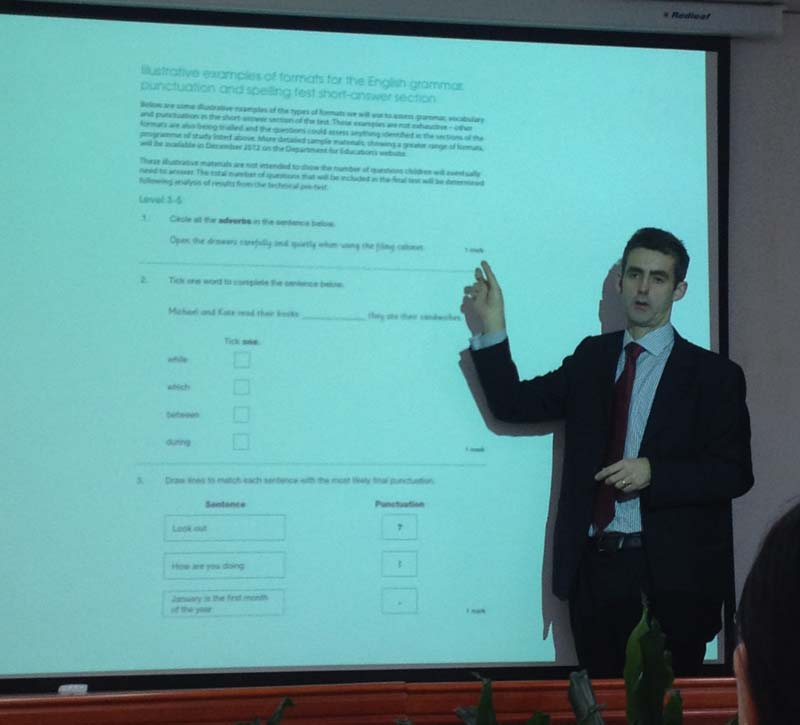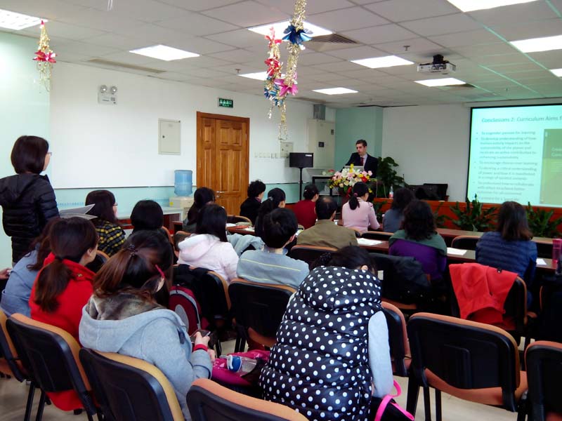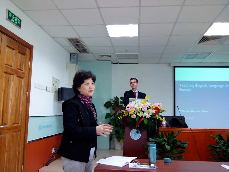 2013年11月4日上午,英国伦敦大学教育做爱视频 Dominic Wyse教授来做爱视频 讲座,并与做爱视频 师生进行交流。Dominic Wyse教授是幼儿教育与小学教育方面的专家,并涉猎英语语言教育、课程与教法等多个领域,著作颇丰、很有见地。他此次讲座的题目是“Teaching English, Language and Literacy”。基于读写能力的多样性、语言的多样性、以及多种语言环境的存在等,他提出了语言教育理论中的一个新概念——multivernacularism,强调不同“语境”在语言教育,尤其是英语教育中作用重大。他还指出语言教育应符合一定的语言原则,如:就能够理解的意义进行交流是语言发展的驱动力;分析理解“实际使用中的语言”是教师与学生适当知识的基础;经历和反思阅读与写作的过程是加强教与学的重要资源等等。Dominic Wyse教授最后总结到:英语教学必须要适应不同的语境;阅读与写作的教学方法要根据语境来选择;教师与学生在有效教育中的重要作用不可小觑。