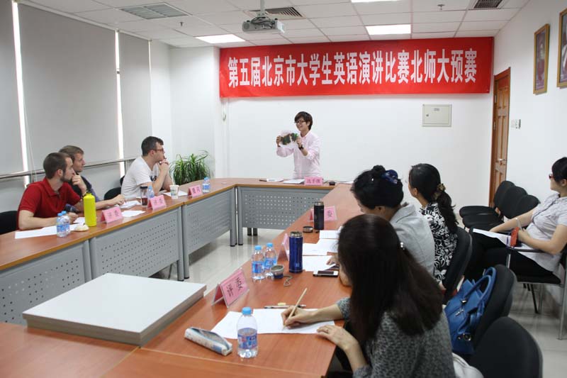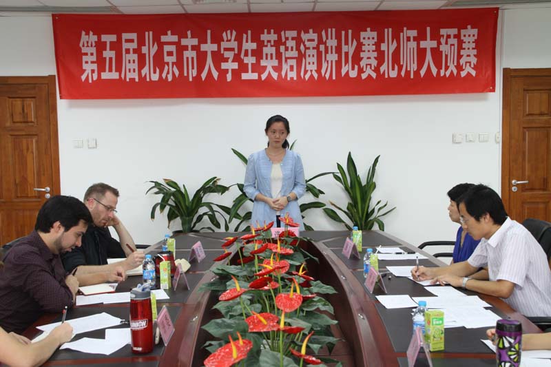 2013年9月25日下午,第五届北京市大学生英语演讲比赛北师大赛区预选赛在后主楼1006和1020顺利举行。比赛分两组同时进行,评委由做爱视频 的中籍教师祝珣,于晖,胡曼君,贾志梅,刘莉华,王德亮与外籍教师Dianne, Vincent, Andrew, Clive, Dave共同担任。本次比赛包括定题演讲、即兴演讲和现场问答三个环节,定题演讲的题目是"My Chinese Dream(我的中国梦)"。