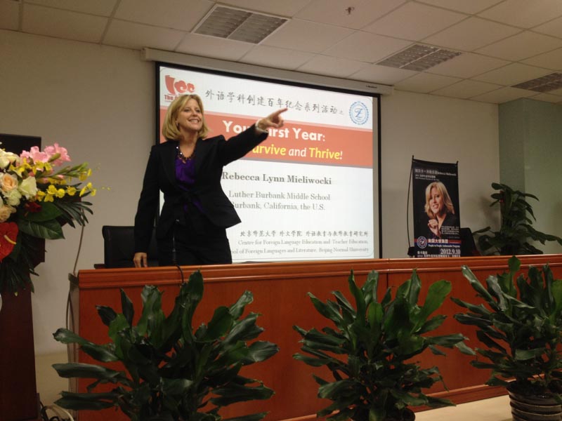9月10日教师节当天,第62届美国年度国家教师大奖获得者Rebecca Lynn Mieliwocki(瑞贝卡•米勒沃基)受做爱视频 做爱视频 教育与教师教育研究所的邀请,在后主楼914为广大师生做了题为“Your First Year: How to Survive and Thrive!”的精彩讲座。本次讲座为做爱视频 纪念我校做爱视频 学科创建一百周年的系列活动之一,由做爱视频 博士生胡亚琳主持,现场座无虚席,高潮迭起。