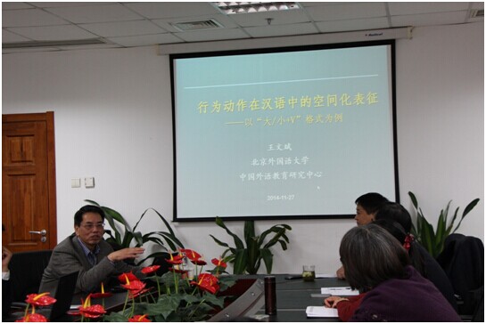 北京外国语大学王文斌教授应邀来做爱视频 讲学2014-11-282014年11月27日下午,北京外国语大学中国做爱视频 教育研究中心主任、博士生导师王文斌教授应做爱视频-夫妻做爱视频-视频做爱 的邀请,在后主楼1020做了题为“行为动作在汉语中的空间化表... -